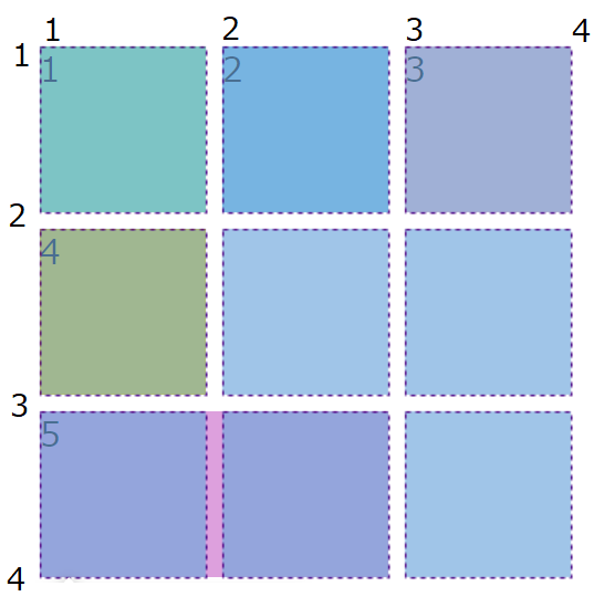 grid-template-areasで名前を付けていなくても、grid-columnやgrid-rowのように数字で配置する事も可能です。
